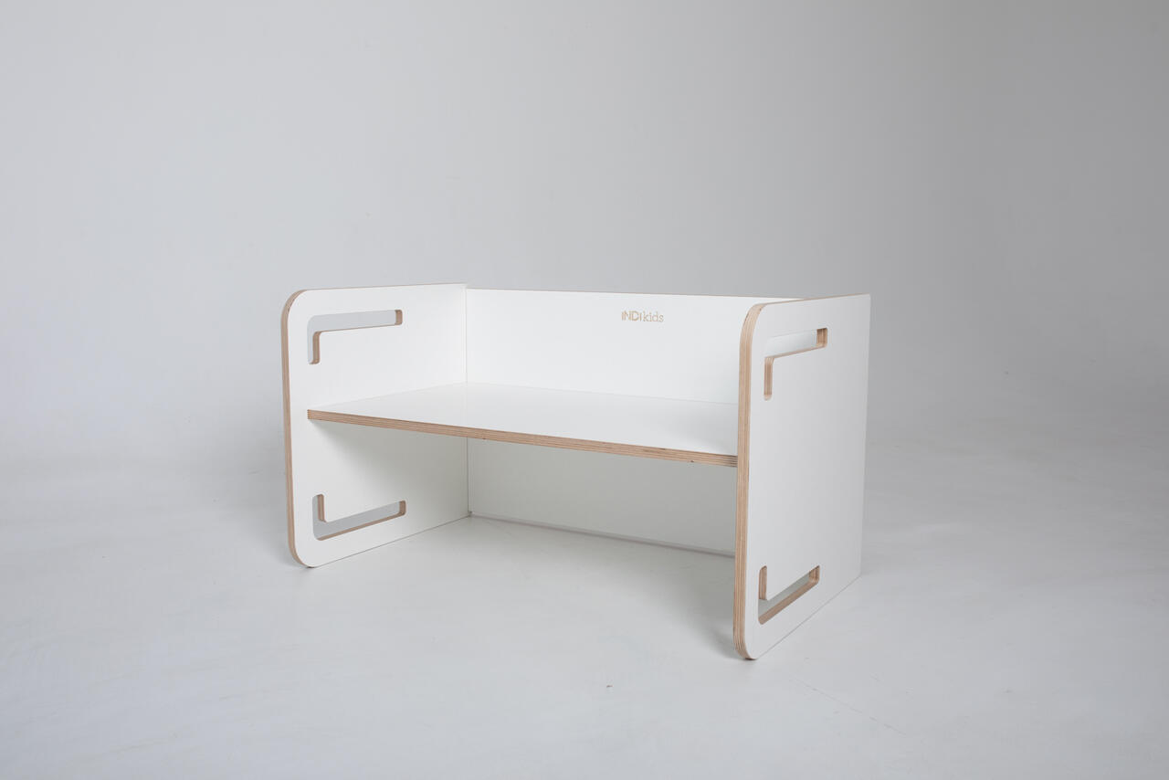 INDI Kids children's table-bench is an ideal piece of furniture for your child for a long time. It can be used as a bench from the time the child learns to sit. The child gets in and out independently. It has two different sitting heights, the bench can be easily turned upside down as the child grows. The high sides and backrests provide support. The bench is also helpful for independent dressing and when putting on and taking off footwear.